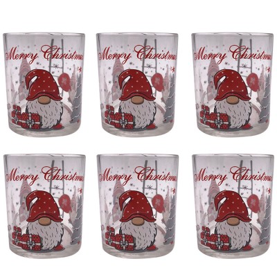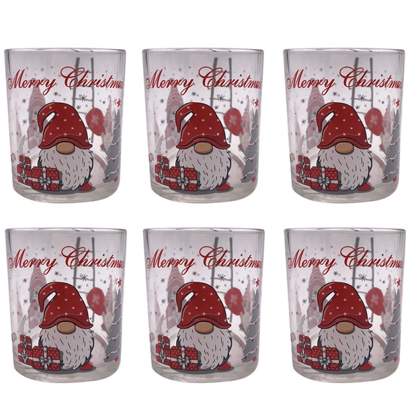 Tutti i pezzi presentano una decorazione festiva a tema Natalizi babbo natale con cappello gnomi rossi con addobbi e motivi tipici delle festività. I bicchieri hanno un disegno continuo che avvolge tutto il vetro per un effetto decorativo a 360 gradi.