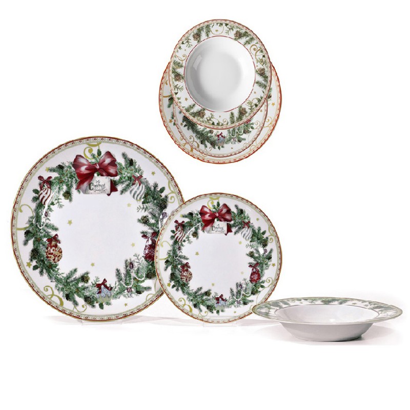 COSEDACASA Vi propone un raffinato Servizio Piatti Natalizio da 18 Pezzi in Porcellana, ideato per rendere indimenticabili i vostri pranzi e cene durante il periodo natalizio.