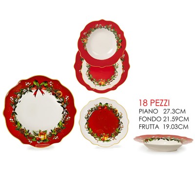 Servizio piatti natalizio 18 pezzi in porcellana