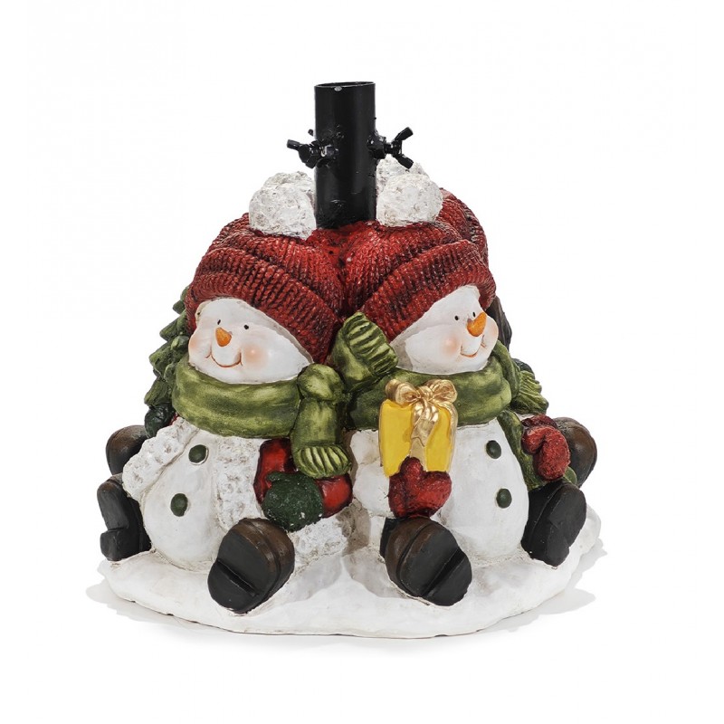 Base per albero di Natale con pupazzi di neve decorativo, realizzata in resina resistente e struttura interna in metallo per garantire massima stabilità.