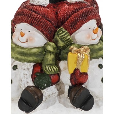 I pupazzi di neve, finemente dipinto a mano, sono i protagonista della scena, con i suoi colori caldi e le espressioni dolci che evocano tutta la magia del Natale.