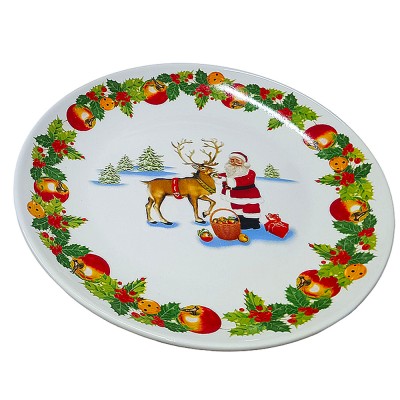 Piatto tondo in ceramica smaltata decorato a tema natalizio