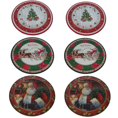 Set composto da 6 sottopiatti natalizi in plastica,dal diametro di 33 cm, ideali per decorare la tavola con calore e atmosfera festiva.