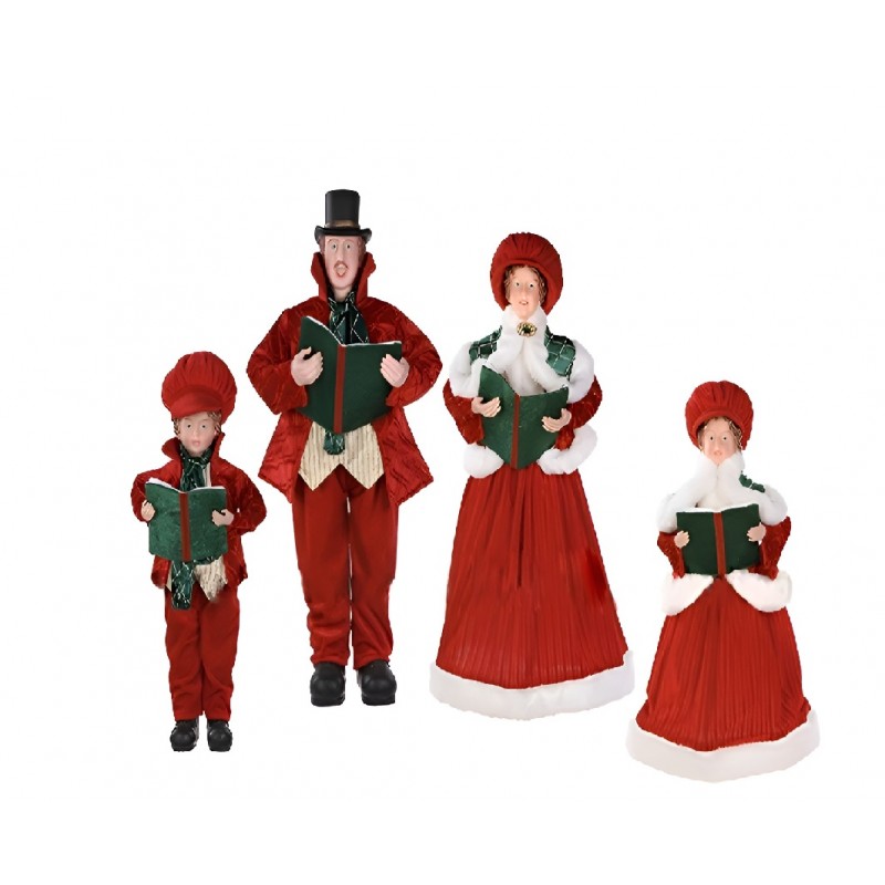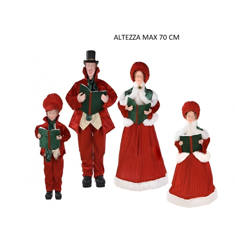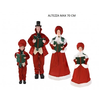 COSEDACASA Vi propone un set di 4 Cantori Natalizi dallo stile elegante classico, vestiti con abiti in tessuto morbido e decorati con dettagli tradizionali come sciarpe, spartiti, bottoni o bordi in pelliccia sintetica.