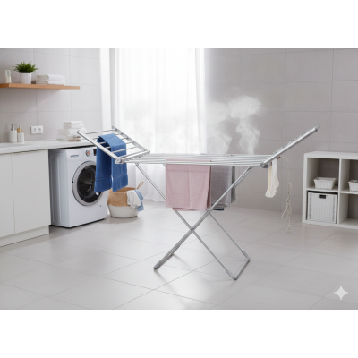 COSEDACASA Vi propone lo stendino elettrico pieghevole ideale per chi cerca una soluzione pratica, veloce e poco ingombrante per asciugare i propri capi in casa. Progettato con struttura in alluminio antigraffio e tubi riscaldanti, questo stendibiancheria combina leggerezza, efficienza energetica e sicurezza. Con una potenza di 260 W e 20 elementi riscaldanti, raggiunge una temperatura di esercizio compresa tra 45°C e 55°C in soli 10–15 minuti, garantendo un’asciugatura delicata e uniforme senza stressare le fibre dei tessuti.