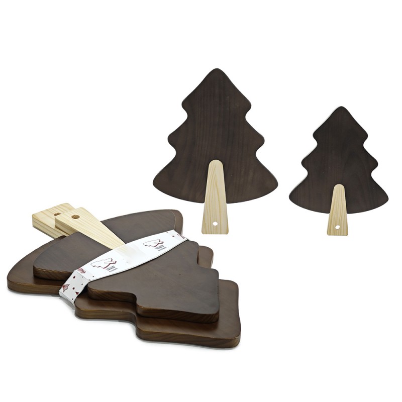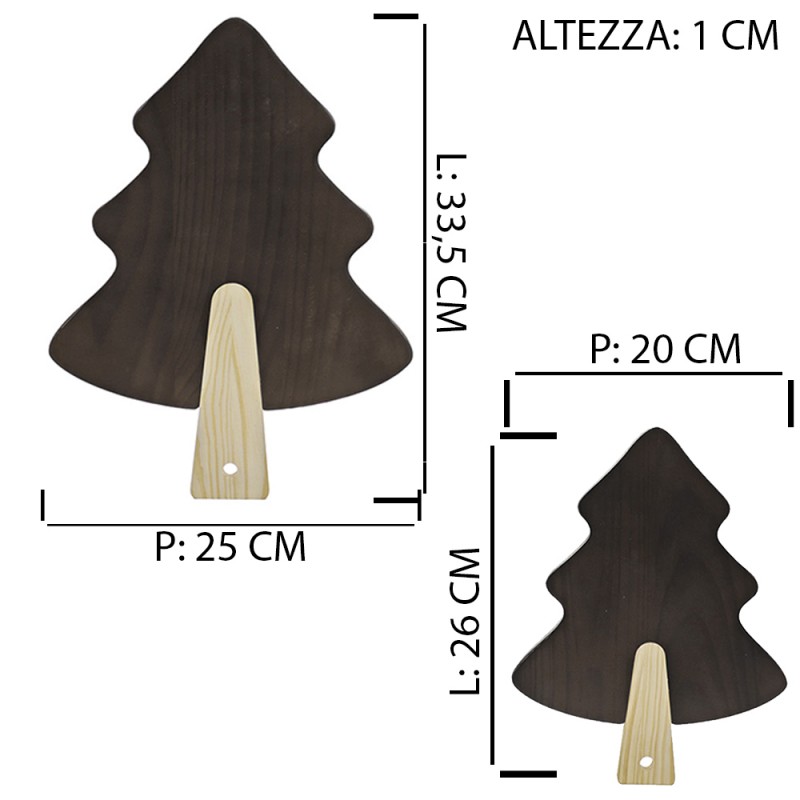 Il set comprende due taglieri di dimensioni differenti – uno grande e uno piccolo – entrambi con una particolare forma di albero di Natale, ideale per arricchire la tavola con un tocco festivo e naturale.
