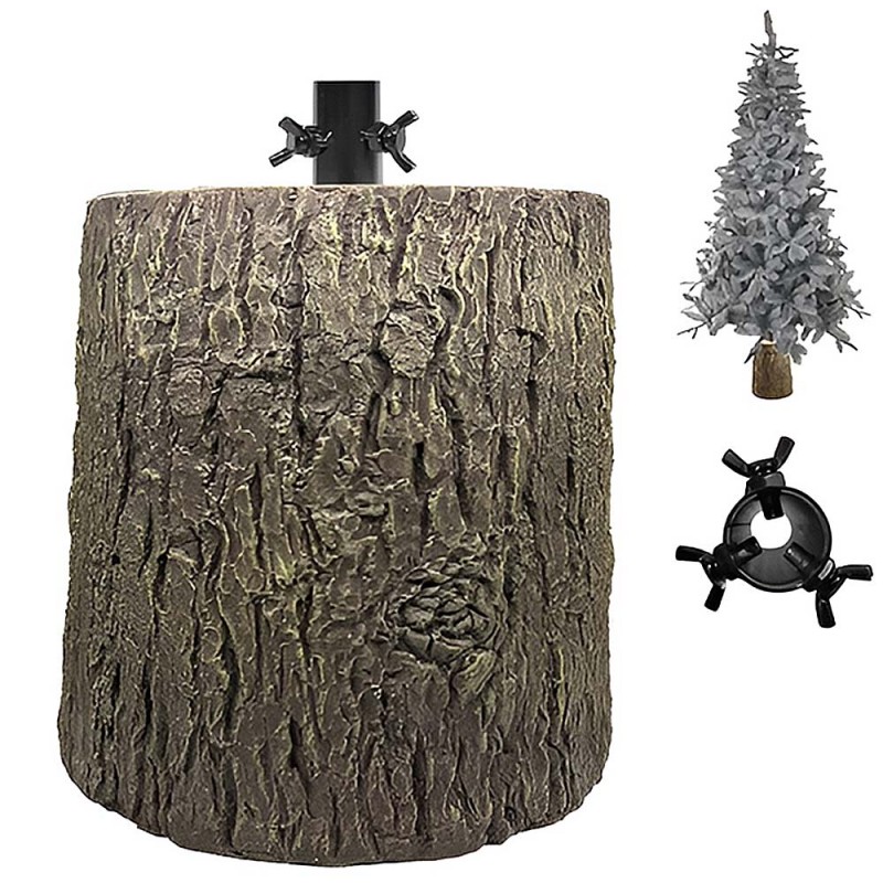 Piede per albero di Natale a forma di tronco realistico, altezza 35 cm, diametro BASE 33 cm.
