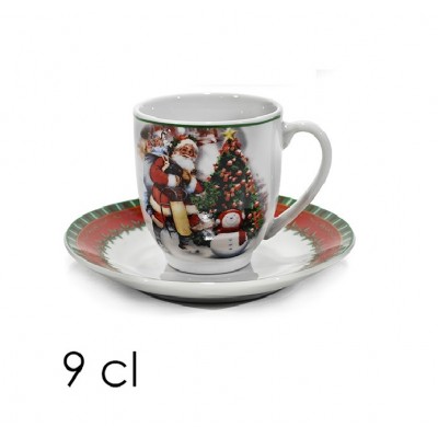 Ogni tazzina è decorata con scene natalizie incantevoli: Babbo Natale con i doni, il pupazzo di neve, l’albero di Natale, agrifoglio e altri addobbi che richiamano lo spirito della festa. Il design è curato in ogni dettaglio, con colori vivaci e brillanti stampati su una porcellana bianca elegante.
