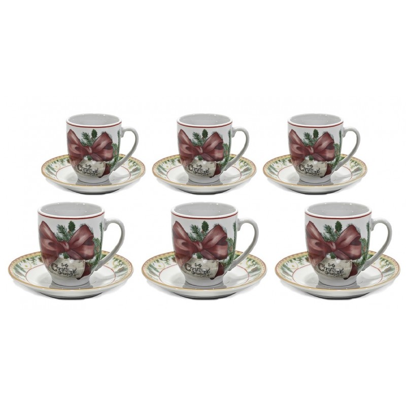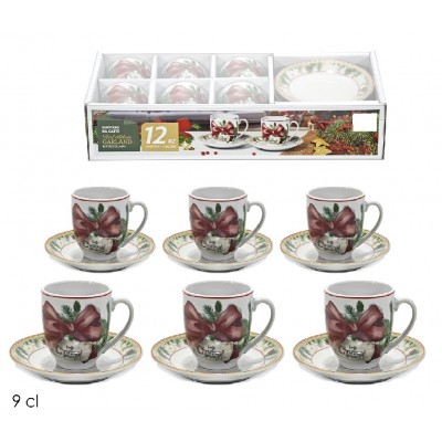 COSEDACASA Vi propone un raffinato servizio di tazzine da caffè natalizie in porcellana di alta qualità, composto da 12 pezzi: