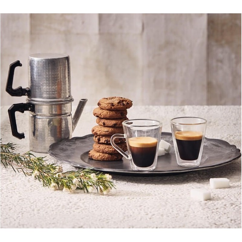 COSEDACASA vi propone il raffinato set da 2 tazze caffè Espressino thermiche da 10,5 cl, realizzate in vetro borosilicato a doppia parete, perfette per gustare l’espresso o l’espressino con eleganza e comfort.