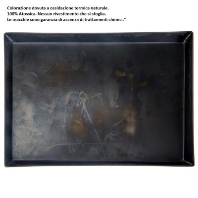 N.B. ASPETTO ARTIGIANALE: Le eventuali imperfezioni visive, aloni o macchie presenti sulla superficie non sono difetti, ma la garanzia del processo naturale di produzione. Ogni teglia è unica.100% SENZA RIVESTIMENTI CHIMICI: Non vi sono pellicole antiaderenti sintetiche o vernici che possano sfogliarsi nel cibo. La superficie è puro metallo trattato termicamente