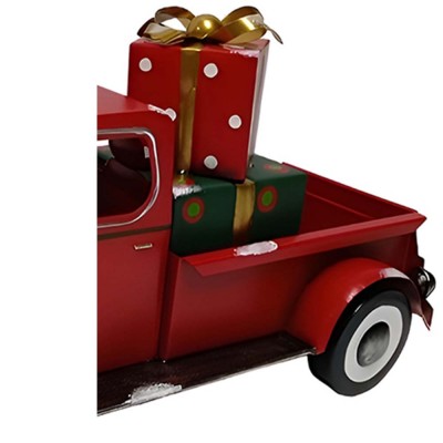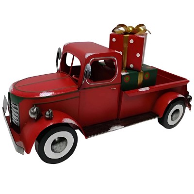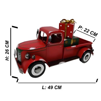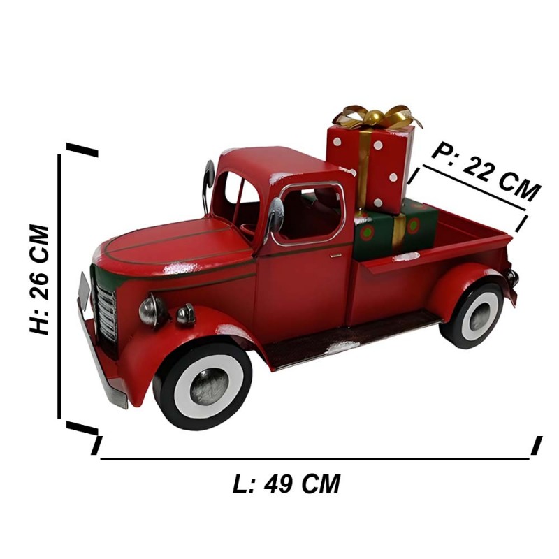 COSEDACASA vi propone un’originale decorazione natalizia dal fascino vintage: un furgoncino pick up grande cm 46 rosso in latta metallo con specchietti e ruote che girano dallo stile retrò che trasporta nel cassone pacchi e regali per i bambini decorativo,