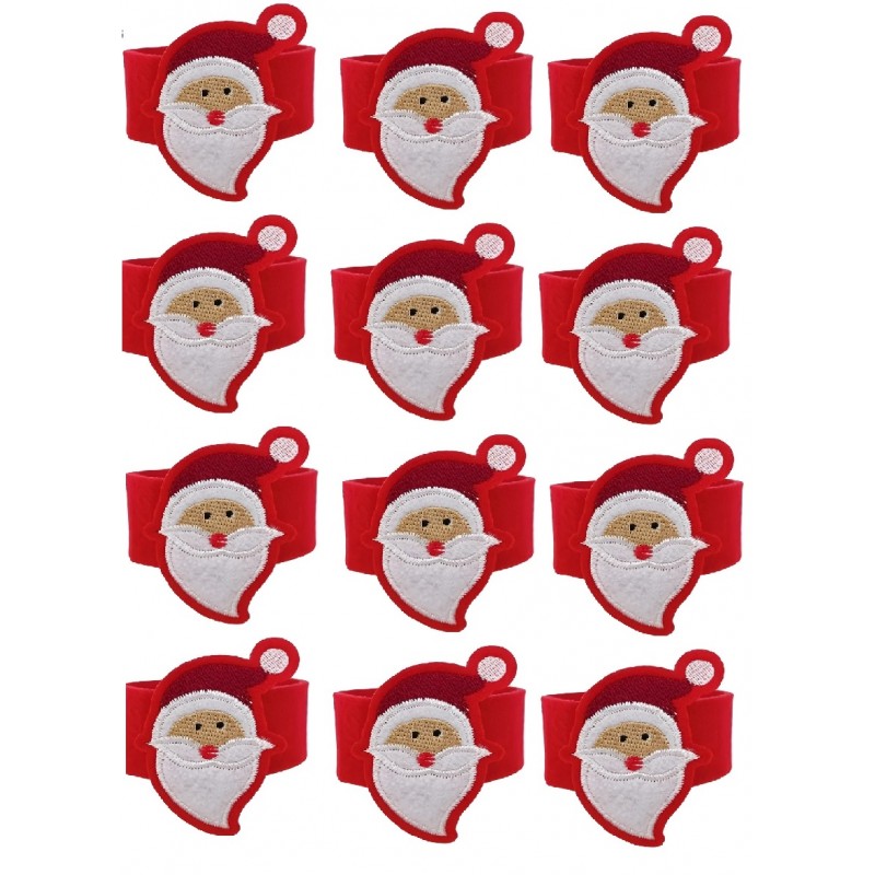 Set 12 anelli porta tovagliolo con viso di Babbo Natale