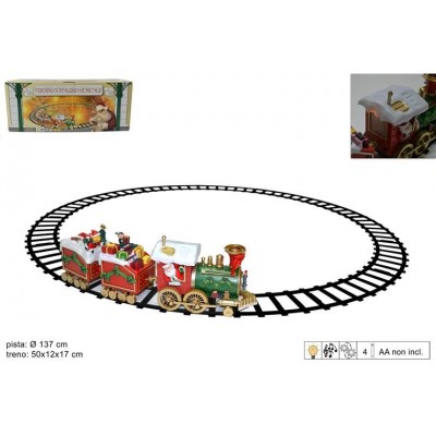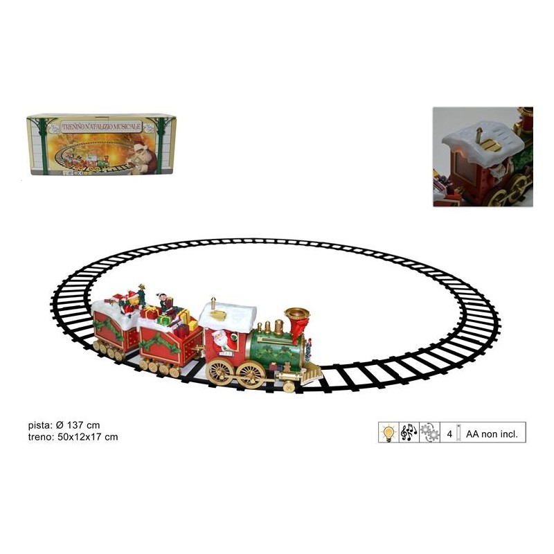 Questo treno natalizio è composto da una locomotiva e diversi vagoni dettagliati, che si muovono su una pista circolare del diametro massimo di 137 cm. Grazie agli effetti luminosi e musicali, trasformerà la vostra casa in un angolo incantato di festa.