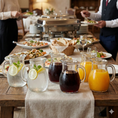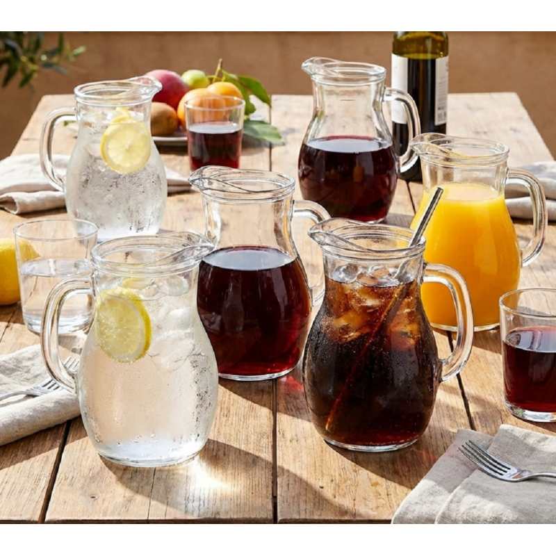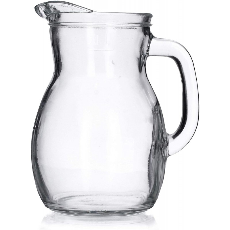 cosedacasa vi propone la brocca Bistrot da 1 litro in vetro trasparente, elegante e capiente, dotata di linea di taratura MID per un servizio preciso di acqua, vino e bevande. Ideale per casa, terrazze, buffet e ristorazione.