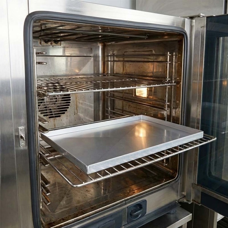 DIMENSIONI OTTIMIZZATE: Misura 65x45 cm con bordi dritti alti 2 cm, offrendo la massima capienza per forni domestici di grandi dimensioni o forni professionali, ottimizzando lo spazio di cottura.