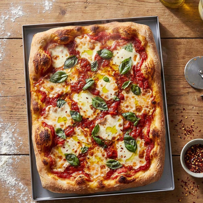 Le dimensioni generose di 65x45 cm con altezza del bordo di 2 cm a 90 gradi (bordi dritti) offrono un'ampia superficie utile, ideale per massimizzare la produzione di pizza in teglia alla romana, focacce soffici, biscotti o basi per torte. La leggerezza dell'alluminio, unita alla sua robustezza, la rende uno strumento maneggevole e durevole nel tempo.